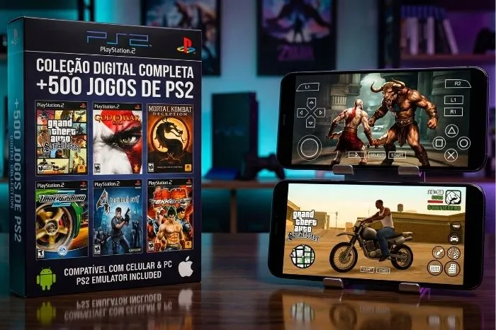Aviso Legal: Este produto não possui vínculo com a Sony ou marcas PlayStation®. O material tem caráter educativo. Caso você seja detentor de direitos autorais e identifique algum conteúdo indevido, entre em contato pela página ou rede social informada para análise e remoção. Jogos de PS2 são destinados apenas para Android e jogos de PSP para iPhone (iOS).